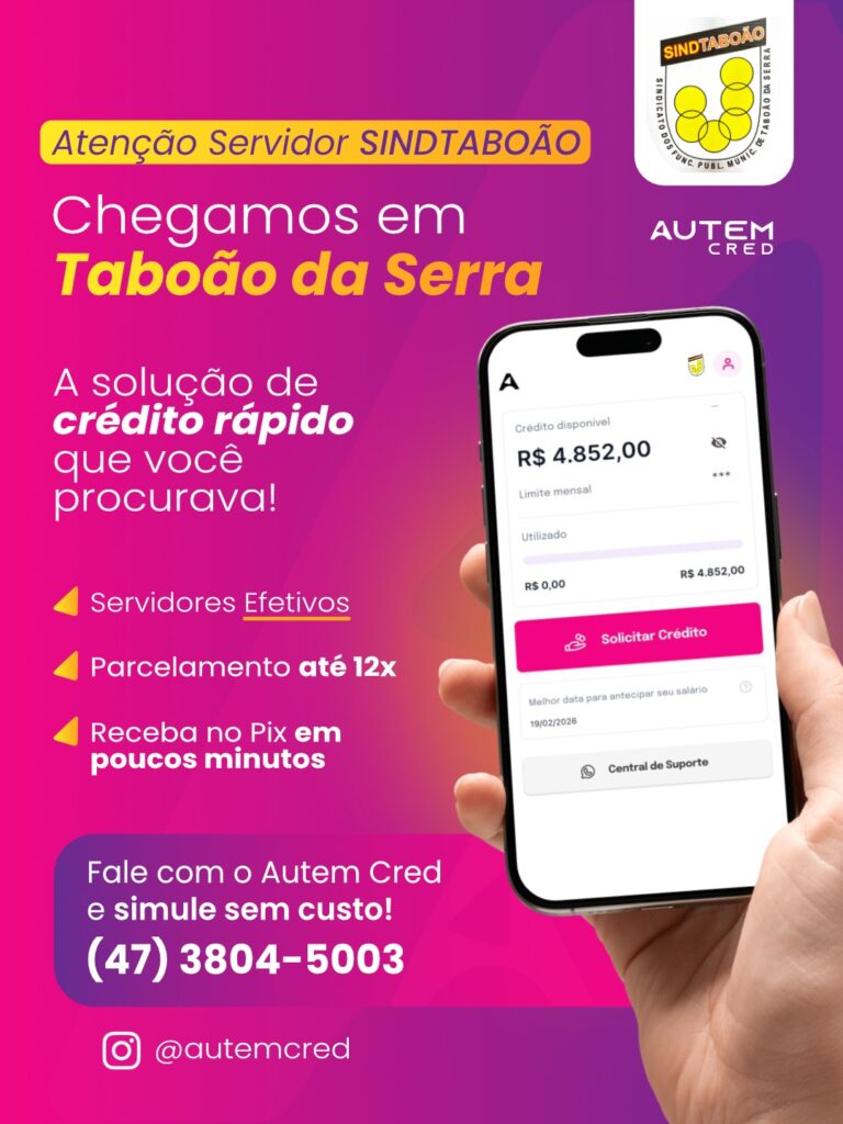 A parceria entre SINDTABOÃO e a Autem Cred já está funcionando. Essa é uma nova opçao para oferecer crédito para os servidores efetivos de forma rápida e com várias vantagens para a categoria.